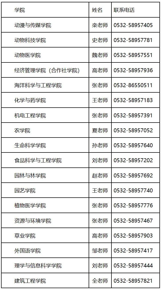 各学院联系方式
