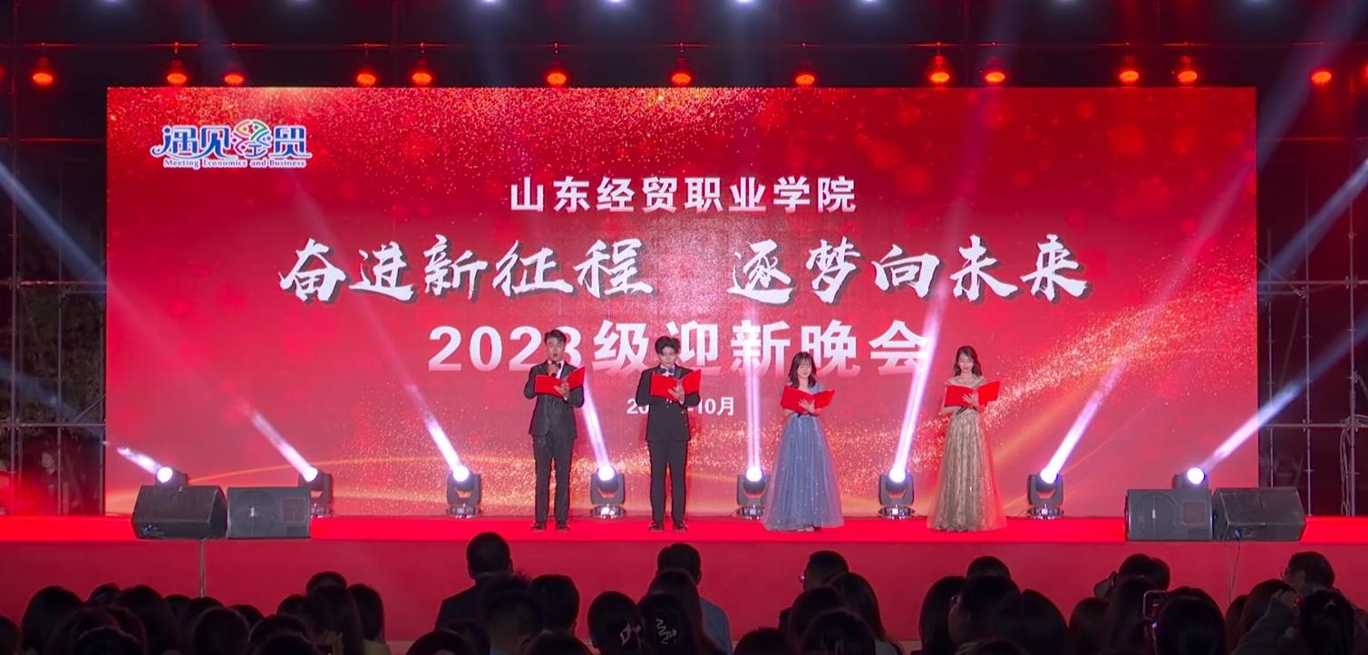 10月7日晚,山东经贸职业学院2023年迎新晚会在体育场举办,学院党委副书记、院长陈卫国,党委副书记王炳华,副院长马起朋、张强,纪委书记刘莹,部分职能部门领导,各系党总支书记、教师代表以及2023级全体新生共同观看了晚会。