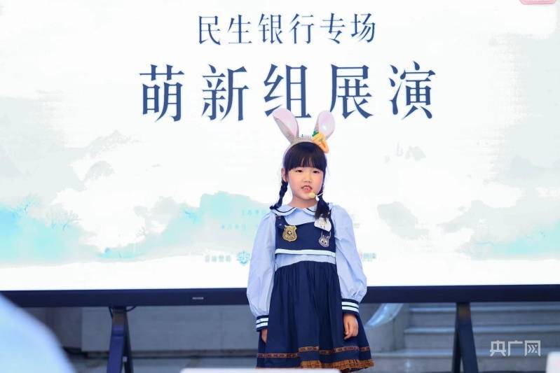 萌新组的小朋友选手首先用稚嫩的童声拉开展演的序幕。他们有的身着汉服,有的戴着可爱的头饰,还有的带着大鹅玩偶,做好了精心准备上台表演。
