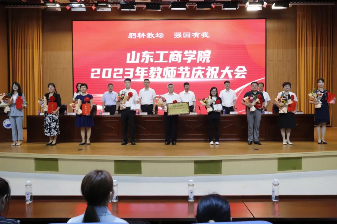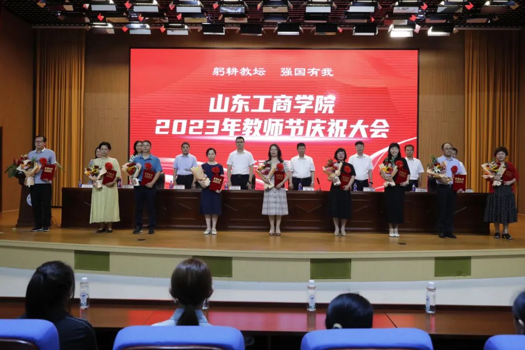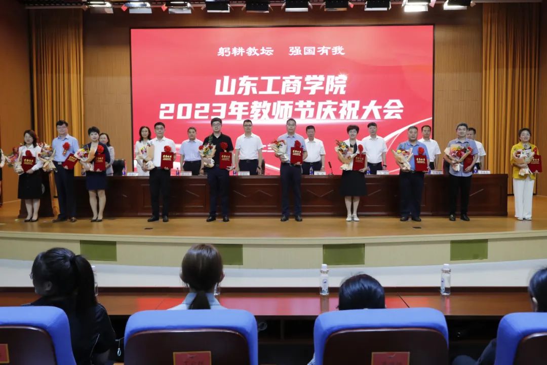 党委副书记张宗伟宣读了《山东工商学院2023年教师节表彰名单》,隆重表彰2023年度优秀教师和先进集体,向在教育服务岗位辛勤耕耘满30年的教师和教育工作者颁发“教学贡献奖”荣誉证书。