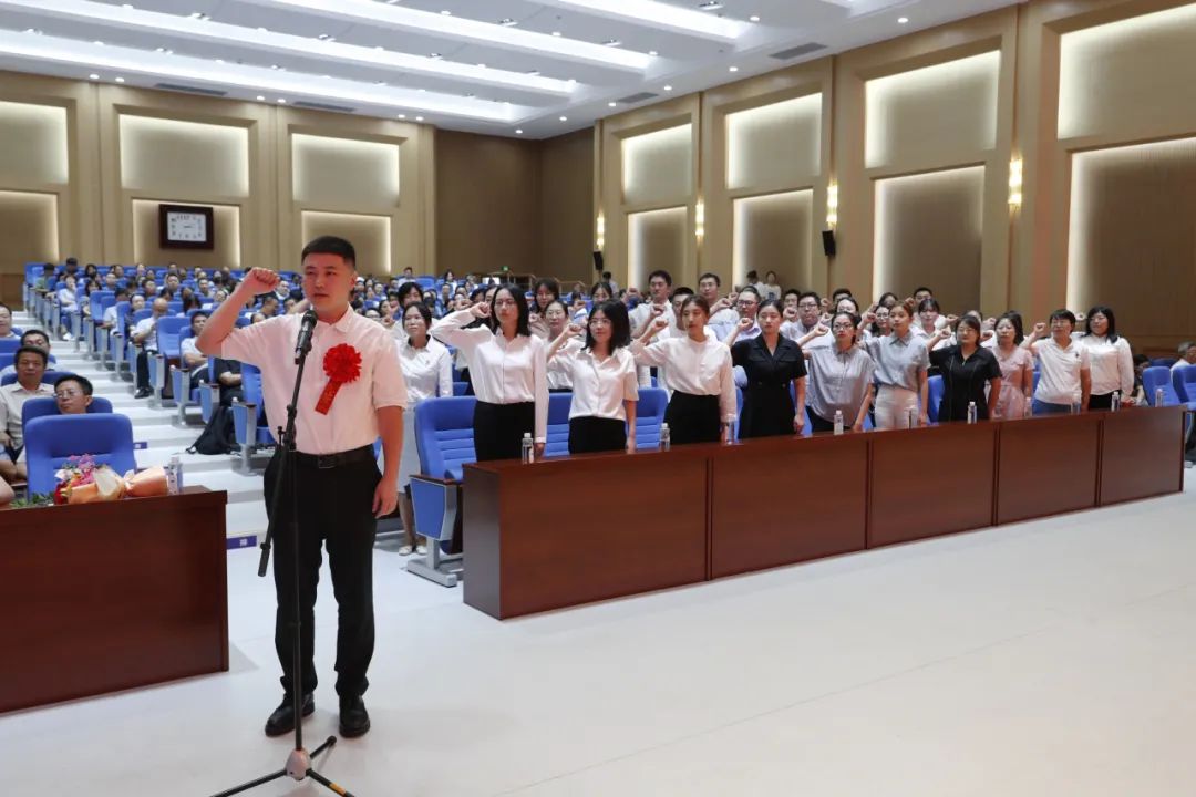 “我志愿成为一名人民教师,忠诚党的教育事业,遵守教育法律法规,……为教育发展、国家繁荣和民族振兴努力奋斗!”在泰山学者青年专家、计算机学院张帆老师领誓下,学校新入职教师面向国旗庄严宣誓。