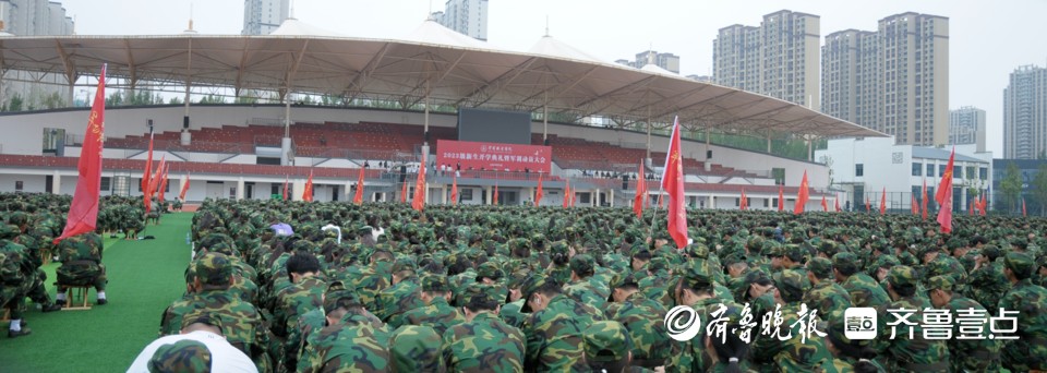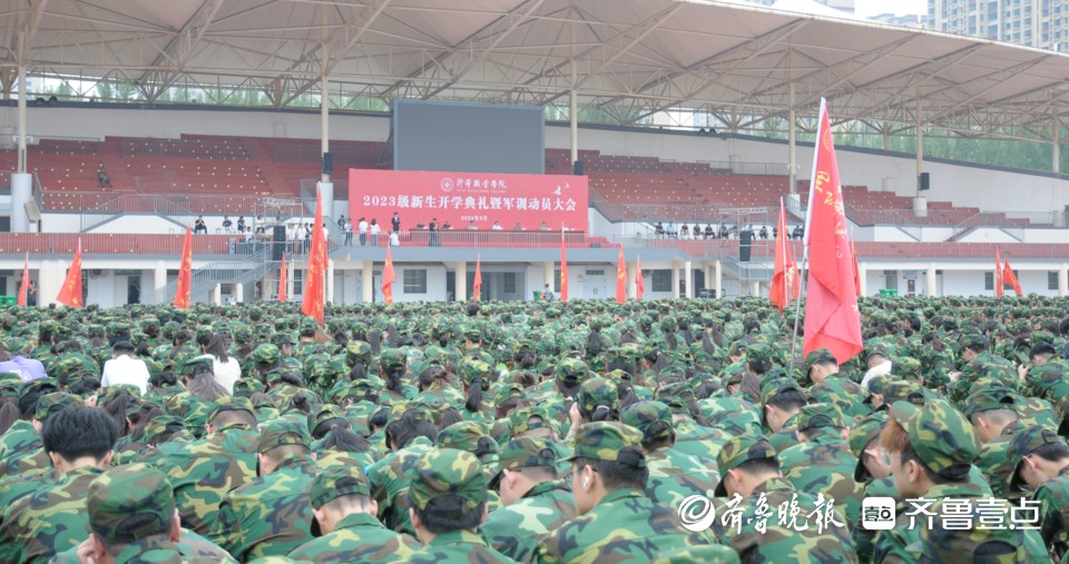9月11日,菏泽职业学院2023级新生开学典礼暨军训动员大会在体育场隆重举行,5300余名2023级新生将拥有“菏职人”的共同身份标识,在这里展开崭新的人生篇章和探索之旅。学院党委副书记、院长袁宗建,牡丹区武装部上校部长侯强,武警菏泽支队中校副支队长徐伟峰,武警菏泽支队中校副支队长徐伟峰,学院党委委员、纪委书记刘存长,党委委员、副院长范帆出席活动,2023级全体新生以及军训教官代表、学校相关职能部门负责人、新生辅导员参加了大会。大会由学院党委委员、副院长王朝景主持。