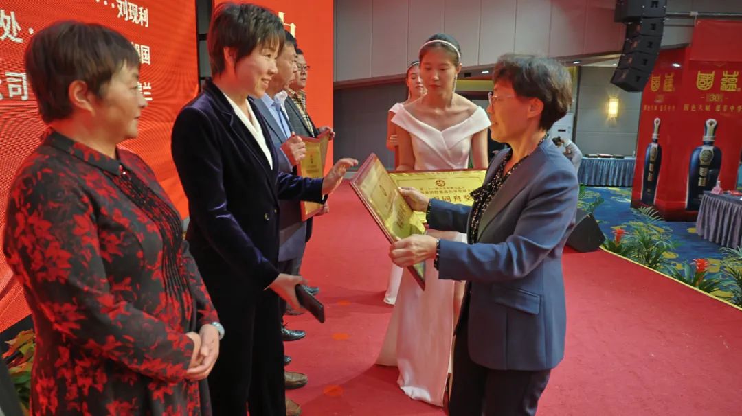 ▲集团党委书记、董事长徐秀菊为优秀经销商颁发“风雨同舟奖”