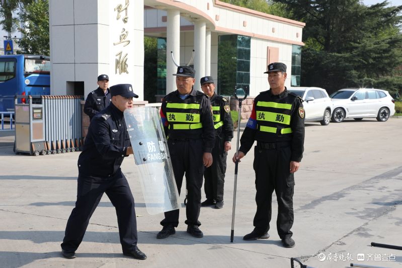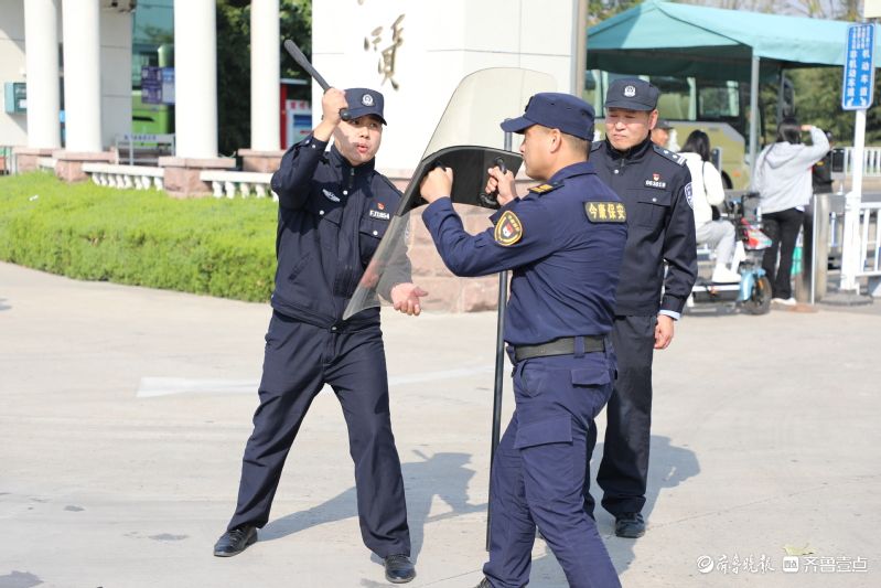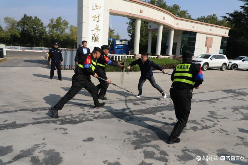 上午10点,山东财经大学东方学院保安人员在北门前站成一排,认真学习校园安全相关规章制度和应对歹徒的基本防范技能。李伟强调了校园安全的重要性,对发生紧急情况的应急处置措施分工、动作要领,各种自卫武器、报警监控装置的操作使用,进行了具体讲解,同时指出防卫器材在不同情况下的用途不同,并让保安人员分别进行示范。