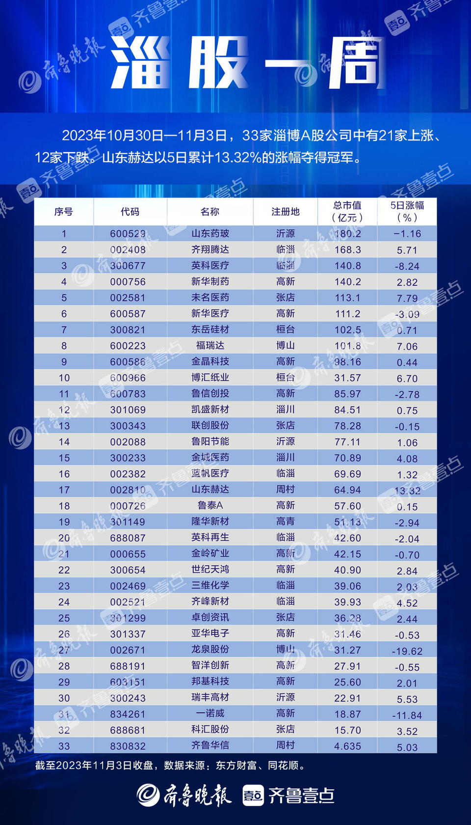 在此背景下,本周33家淄博A股公司中有21家上涨、12家下跌。
