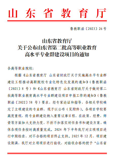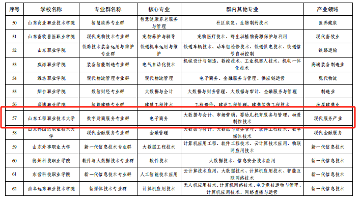 数字财商服务专业群获批山东省第二批高等职业教育高水平专业群建设项目,标志着学校以电子商务为龙头的“新商科”品牌专业群建成;