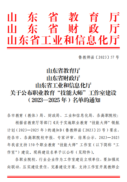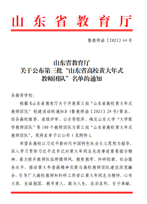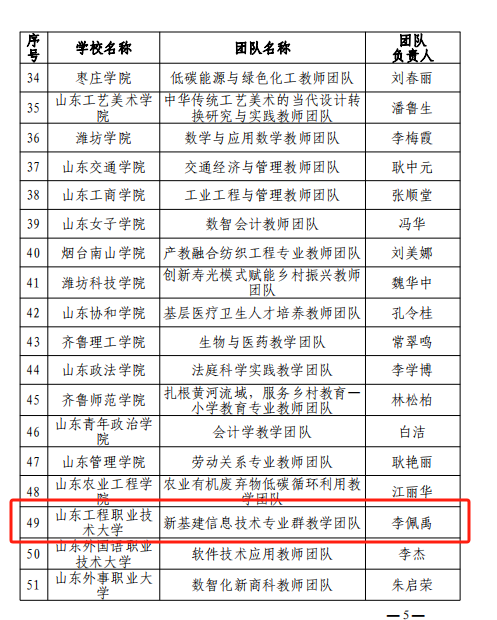 新基建信息技术专业群教学团队荣获第三批“山东省高校黄大年式教师团队”;