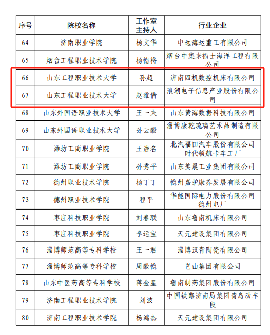 获批2个省级技能大师工作室立项,分别为电子信息工程学院赵雅倩技能大师工作室和智能制造学院孙超技能大师工作室;